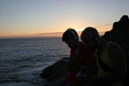 Fixemos varias gravacións. No solpor, poidemos ver ademáis do agochamento do sol, como uns arroaces despedian o día e saudaban ós que alí estabamos presentes, pegando uns impresionantes chimpos, e facendo acrobacias no aire.