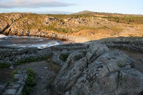 Un sendeiro leva ao sector máis alto do poboado, no que tamén hai construcións.