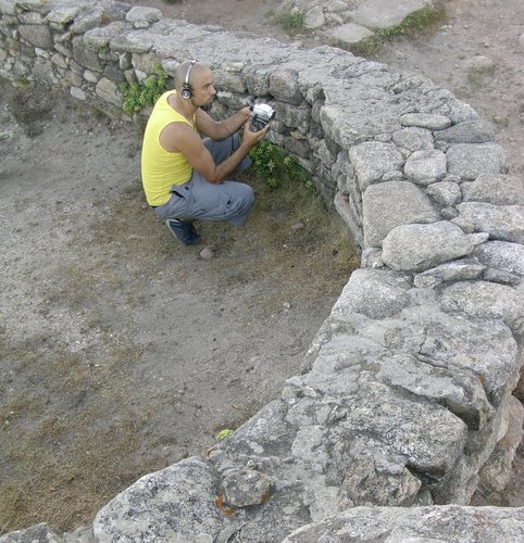 (Foi feita poñendo os micrófonos entre dúas rochas, en forma de v. De fondo óense uns tambores de xente que estaba nos castros tocándoos)