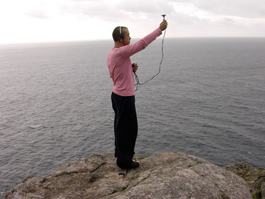 Sempre na procura do son, o brazo estirado, a posición de embelesamento, case de adoración e o mar que fala e a rocha que escoita. Case parece imposible recoller cun micro minúsculo o que esa inmensa boca di.Son momentos para a inmovilidade, para a fusión.[…]