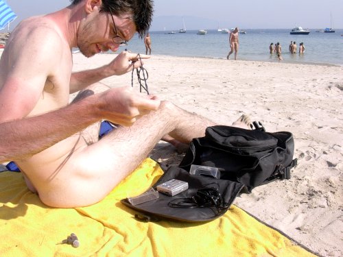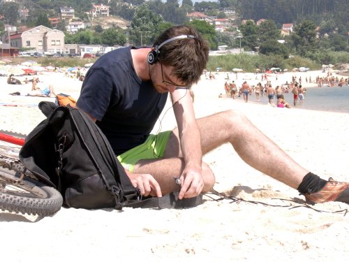 Seguimos avanzando nas bicicletas, pero o cansancio e o sol fíxonos esquecer a idea de facer unha gravación na praia de Nerga, así que seguimos ata Viño, unha praia para espidos, e alí fixemos a terceira gravación.