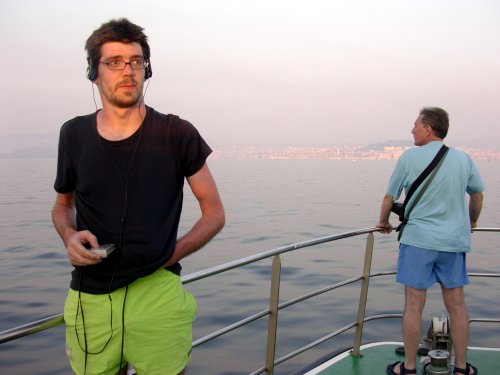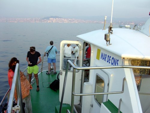 E xa de volta a Vigo, démonos conta de que o «Mar de Ons», o barco que cruza a ría entre Vigo e Cangas, ten os seus días contados. Estase falando da construcción dunha nova ponte que atravese a ría, e tamén de incorporar Hovercrafts para estas rutas. O son do «Mar de Ons» está, entón, en perigo de extinción. Fixemos dúas gravacións dos primeiros e dos últimos minutos desta viaxe. Na segunda gravación pódense escoitar algunhas voces anónimas, (ao final da gravación), que estamos seguros que serven de testigos dunha viaxe «tipo» entre Cangas e Vigo.