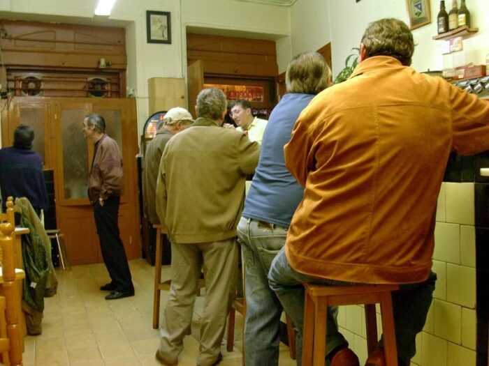 Dentro do local escoitamo as conversas dos clientes. Polo xeral en inglés, xa que é o propio deste bar