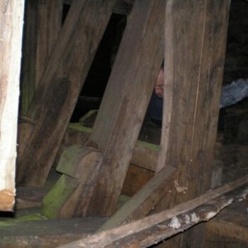 Outra toma do andar do batán, onde se aprecia perfectamente en primeiro plano o rinchar da madeiras das pezas que compoñen o batán, que ao andar rítmicamente co bater das mazas proporcionan o contrapunto no espectro agudo aos graves creados polo golpear das mazas do batán. De fondo, o continuo branco do correr da auga, omnipresente.