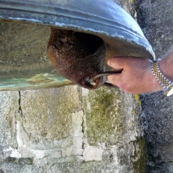 Toque de campas que se dá para avisar aos veciños do comezo da misa maior do domingo en Benavente.