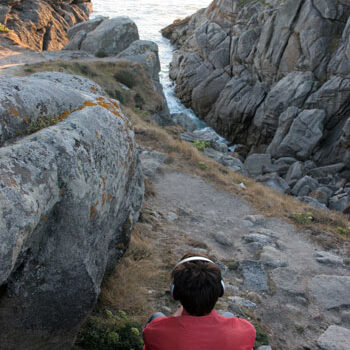 Esta paisaxe sonora pertence ó castro de Baroña. Foi gravada poñendo os micrófonos entre duas rochas, en forma de v. De fondo óense uns tambores de xente que estaba nos castros tocándoos. Foto: Pablo Sánchez