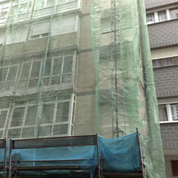 Cclle Ezcurdia. Obras en la fachada de un edificio. Se escuchan los sonidos de las obras y los del tráfico de la calle.
