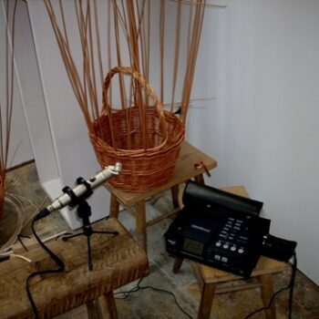 Vigo – Rua dos Cesteiros recostrución virtual. Fai corenta anos máis de vinte cesteiros traballaban nesta rúa. Esta é unha reconstrución virtual da paisaxe sonora desta rúa con tres deles traballando. Paisaxe sonora da Rúa dos Cesteiros, compradores, transeúntes camiñando. Aínda que se atendemos ben podemos escoitar sons que non pertencían a esta rúa fai corenta anos, entón o son dos tres cesteiros que traballan nesta paisaxe sonora poderíanse interpretar como os sons dos pantasmas deses traballadores do vimbio.