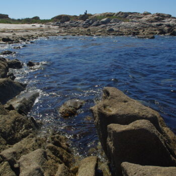Serie Sons da Costa Carnota – Punta dos Remedios O mar chega calmo hoxe a esta pequena punta, onde o pasear das pequenas ondas sobre as penas da punta produce calmas e sedosas explosións de agudos que calman o espiritu e aminan a mente. De fondo, moi miudo, o motor dos ventiladores dos equipos da piscifactoría cercana, poñen o contrapunto grave na paisaxe.