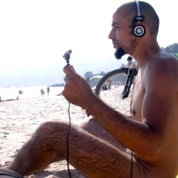 Gravación na Praia de Viñó, na Península do Morrazo. Viñó, con Barra, son praias de espidos. A gravación fíxose nunha viaxe en bicicleta pola costa do Morrazo. Por Chiu Longina.