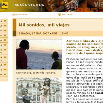 Intervención de Escoitar.org en el programa «España Viajera» de Radio Nacional, Radio 1, dirigido por Mamen Asensio Ortiz. Sábado 17 de marzo a las 12h. Se explica el proyecto que en este momento forma parte del Proxecto-Edición (MARCO, CGAC y Fundación Seoane).