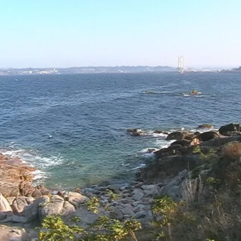 Escoitando dende a casa das palabras a ria. As olas producen un efecto curioso ao rebotar o seu son contra o muro de cemento, creando un efecto tunel na paisaxe que fai que abunden os armónicos medios e falten os agudos que permiten ditinguir o bater das olas nas rocas.