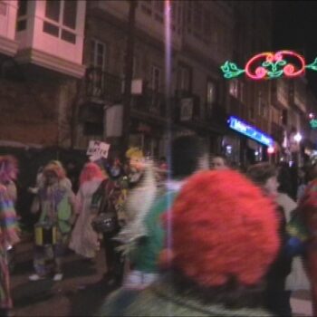 coruña non é brasil… pero en carnavales hai ganas de festa. unha charanga pasea os ritmos brasileiros pola calle da torre a pesares do frio inverno. A xente comenta a xogada 🙂