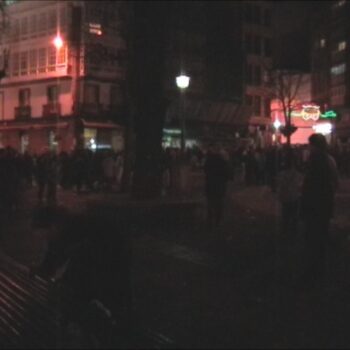 Na praza de españa os cativos xogan… Petardos e barullo por todos os lados. Festa de carnaval.. A Orquesta tocando… Barullo, barullo e máis barullo… sen coches, sen tráfico. Festas de carnaval na coruña.