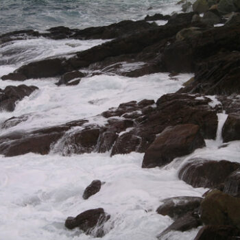 O mar bate con forza contra o paseo a altura do paraninfo, mezclandose o bruar das olas co son das gaivotas. De cando en vez algún vehiculo pasa, pisando algunha das alcantarillas que están soltas. Tamen, escoitamos algúns viandantes que andan a caminar do paseo, disfrutando do tempo. Inda que o pareza o día non é especialmente desapacible, o único é que o mar está algo bravo.