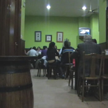 Depois dun intenso dia de traballo a xente relaxase tomandolle unha ración de pulpo en boa compañía. Podense escoitar a xente falar animadamente, os cacharros ir e vir, e se prestamos atención as tixolas da pulpeira cortando no pulpo.