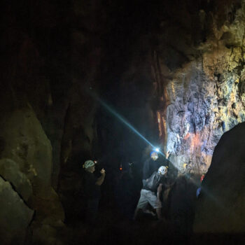 Toma dende o final da cova. A gran bóveda da Laghoa recolle a intimidade do seu interior, as pingas de auga, e a reverberación dos coches que veñen do exterior. Prodúcese un contraste moi forte entre os ruídos dos dous espazos.