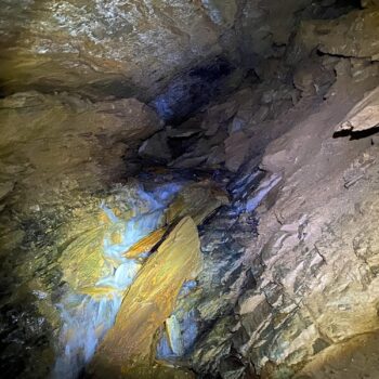 Cova de Ceza. O Courel. Cascada interior con xeófono no chan