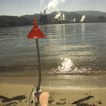Comentarios gravando en fronte da fábrica de Ence, na praia de Lourido…