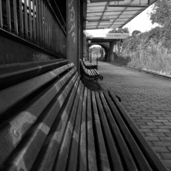 Serie estacións. A pasarela para o acceso ao anden de Miño está construída en metal, e ao pisar por ela, prodúcese un son cheo de graves reverberantes que se meten no corpo e parecen dicir que a oxidada pasarela vaise caer destartalada baixo os nosos pasos. De fondo, escoitándose cada vez mais conforme nos acercamos a ela, o ruído do tráfico da carreteira desde a que se accede ao apeadeiro. Os paxaros, inmunes aos retoques queixosos da pasarela, continúan co seu cantar.