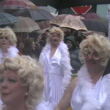 Festa do cocido. Esto non é america. É lalin, inda que pareza o missuri americano. Unha carroza atrona (hipersaturando o equipo de audio da sua carroza) ca música para o seu show, i a xente encantada, vendo a unhas peculiares clones de marilin. Lastima de imaxe 😉 Timidamente algunhas voces atrevense a loitar contra a megafonia para falar cos que teñen ao lado. O final da gravación a maquinaria dos servicios de limpieza municipal tenta desfacer algo o desaguisado de confettis, papeis e demais caralladas varias. Ao final, acabouse o desfile e a xente dispersase.