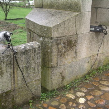 Cara da ponte augas abaixo. Corre o rio, enchendo co seu bulir tranquilo a paisaxe sonora dun fondo continuo e permanente que relaxa o espírito. Os paxaros, xogetean co espacio estero, pasándose de dereita a esquerda, ao lonxe, dándolle o contrapunto agudo e chisporroso ao monótono fungar do rio. Destaca a ausencia case total de sons derivados de presencia humana, como moito o bruir dalgún motor que parece mais un murmurio que outra cousa.