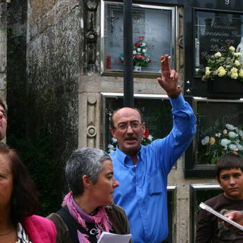 Miguel no campanario facendo o seu repique no encontro Campás e Campaneiros (2009) organizado pola asociación Os Chichcisos en Pazos de Barbén