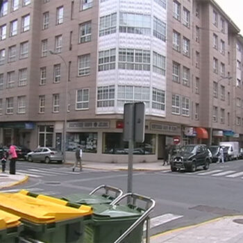 Cruce paralelo a rúa principal. Paxaros no ambiente. Xente falando. Contados coches pasando. Tranquilidade relativa.