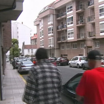Tranquilidade de zona residencial. Algunha xente pasando. Algún coche. O murmullo do tráfico ao lonxe.