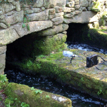 Gravado na beira dun dos canais de saida do fruxo da auga do chabolo dos batáns, empregando un gravador TASCAM HD-P2 e un microfono estereo marca RODE modelo NT-4