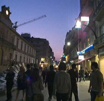 Paseo pola rúa Principe. Sons de xente, de músicos, de cartos e de presa por facer as últimas compras do día.