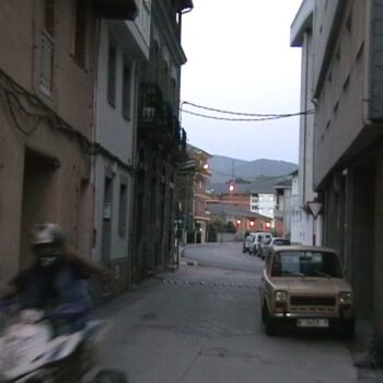 Tarde de domingo de sol na zona vella de Quiroga. Pasa algun coche e moto rompendo a tranquilidad dos veciños que están a charlar na porta das casas.