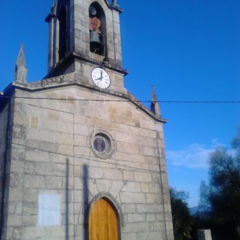O reloxio foi doado por un veciño a finais do s.XX. Se ben ao principio este son foi algo molesto para os veciños, que non estabamos acostumados, polo que houbo que reaxustar a súa frecuencia, agora é un son totalmente integrado na paisaxe natural da nosa contorna.